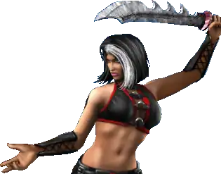 Sareena is one of Quan Chi's personal assassins. She and her two partners, Kia and Jataaka, were ordered to kill Sub-Zero before he reached Quan Chi. They were defeated, but Sub-Zero strangely spared Sareena's life. Later, as Sub-Zero battled Quan Chi, Sareena suddenly appeared and did a Heel Face Turn by helping him in defeating the sorcerer. After expressing her desire to escape the Netherealm with him, she's shot in the back with a bolt of energy by Shinnok. She collapses into an enraged Sub-Zero's arms and seems to die... |
