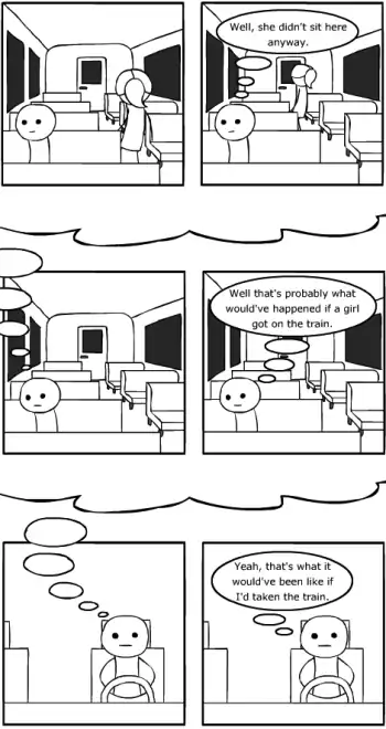- In one episode of Frasier, the eponymous doctor is seriously doubting whether he should help strangers in need. While driving his car, he sees a woman standing in the rain, and decides to give her a ride. The woman turns out to be a transgendered prostitute, and Frasier soon gets arrested by the police, who mistakenly think he's soliciting for her services. The whole event ends up being publicized in the media, making Frasier a laughing stock. Just before the episode ends, it cuts back to the scene with Frasier in the car and the woman standing in the rain. Turns out everything that happened was just a worst-case scenario Frasier had been considering in his head. He gives the woman a ride anyway.
