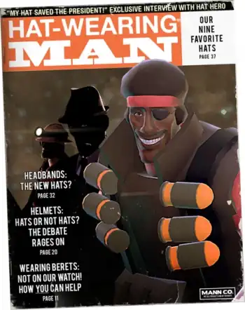 - Team Fortress 2, also known as The Quest For More Hats, or Hat Fortress 2. At the time of their introduction, there was a single hat for each class giving a total of 9 hats. There are now well over a hundred. Hats are Serious Business in the Team Fortress 2 world and the base broke several times over various updates due to hats. The game is now advertised as "The world’s #1 war-themed hat simulator"!