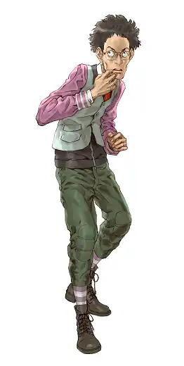 A jittery and nervous man with glasses who seems to know more than he should. His bracelet number is 9. Although written with different kanji, the first syllable of his family name is a homonym of the word for "nine".
