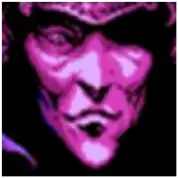 Main antagonist of the first NES game, the sorcerer Guardia de Mieux dubbed himself "Jaquio" (supposed to be "Jaki-Oh", as in "Devil King"). While supposedly human, Jaquio appears as a bizarre, uncanny magician with purple skin dressed in a red torn tunic with a hexagram embroidered on the front and a purple skeleton of a demon wrapped in his body like an armor. Jaquio as Chief of the Chaos Tribe, and he plans to steal the Demon Statue and break the seal on the Dark God, plunging the world into darkness.