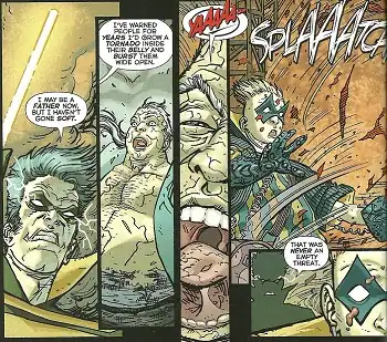 - Pictured above: The Flash villain Weather Wizard states that despite being a family man, he was not kidding about threatening to place a tornado into someone's belly, and actually carries it out.