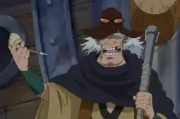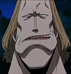The Big Bad of the first movie. A pirate who loves gold and is seeking after Woonan's treasure. He ate the Voice-Voice Fruit (Goe Goe no Mi) which allows him to fire beams of sound from his mouth.