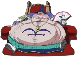 The Substitute Queen of Kamabakka Kingdom, is a huge crossdresser who rules the island during Emporio's absence. Later confirmed to be one of the 99 masters of Nekwama Kenpo guarding the recipies for the Attack Cuisine.
