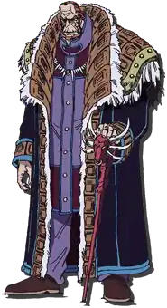 A really old man living in the Grey Terminal met by Luffy-Ace-Sabo. He was a famous pirate once, and even fought against Gold Roger himself.