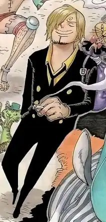 - Random Smoking Scene: In the movie One Piece Strong World. (While dressed like a hippie. Exactly what he's smoking is anyone's guess.)