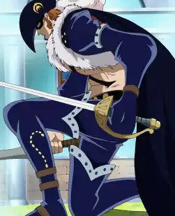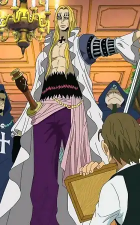 - The Comically Serious: When face-to-face with the Straw Hats' antics, he doesn't seem to know how to react, leaving him with either a deadpan or annoyed expression when they're doing things like tying an incapacitated Chopper to his head.