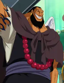- Bait the Dog: Wasn't really shown to be evil, snarking at Luffy and Law during their Enemy Mine at Sabaody and showing general disgust at the decadent world nobles. His cruelty and penchant for wanton murder were mentioned before but when he's actually showing crucifying pirates fleeing the New World it's a little jarring.