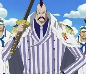 - The Chessmaster: For all the Oh Crap and Not So Stoic moments he's had, when he actually gets involved he turns out to be a brilliant strategist, almost immediately turning what was a losing battle for the Marines to them literally inches from victory by trapping the Whitebeard Pirates and allies around the bay, forcing the Marine warships in and sending powerful Artificial Humans in pushing them in the center, destroying morale by disseminating a lie about Whitebeard to his allies who had their own grudges about Gold Roger, activating a massive blockade impenetrable even to Whitebeard himself, and cut the video feed at some point after he revealed Portgas D. Ace was Gold Roger's son all so that Ace will be executed, ahead of schedule if need be given the confusion, attaining victory for the Marines.
