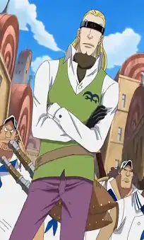 - Cultured Badass: At least preferred to give off the image of one in his first appearance. One trick he was shown to use was to give a restaurant instructions to serve a specific wine, so he can pretend to identify it by wine tasting. However, Sanji saw through this and served him something else entirely.