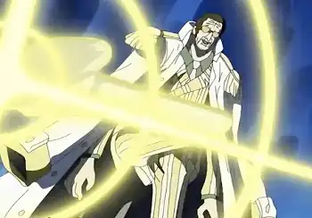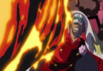 - Badass: He may be a complete and utter dick, but you have to admit he's the most badass Admiral of the Marines. Most notably, he is the first person to kill a major character onscreen, in a manga where almost no one dies in the present. Other hits include melting off half of Whitebeard's face, and not only surviving Whitebeard's counterattack of two earthquake punches, but also getting back up and setting his sights on killing Luffy. It takes Crocodile and pretty much the entire remaining Whitebeard crew just to slow this guy down.