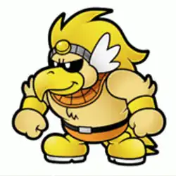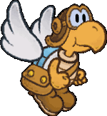 This harried courier is Mario's 4th party member. He's a Parakoopa who uses his wings to help him deliver mail. He can carry Mario across short gaps, but he's also involved in a lengthy sidequest to nab one of the game's rarer badges.