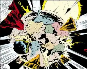 - The Battleworld from Marvel Comics' first Crisis Crossover, Secret Wars, created by the omnipotent Beyonder from pieces of different worlds (including a town from Earth) to serve as the Arena for his superheroes vs villains battle.
