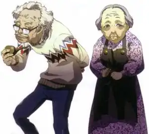 Owners of the Bookworms bookstore at Iwatodai Station, Bunkichi is an occasionally wisecracking and sometimes senile, but ultimate well-meaning old man (who frequently gives the main character food), and Mitsuko is his more quiet wife. The two of them represent the Hierophant Social Link, and pursuing their Social Link has the main character frequently visiting their bookstore, ultimately learning that they had a son, who was a teacher at Gekkoukan High until he was killed in a car accident, when a persimmon tree was planted at the school in memorium of him. Eventually, the two of them catch wind that the tree is going to be cut down, and start a petition to try and stop it, but when they learn that the tree is going to be cut down in order to build an extension on the school, they finally decide to let them cut it down, deciding that education is important than their son's memories, and that he would've wanted it that way (though eventually it's revealed that the tree was simply relocated instead of cut down).