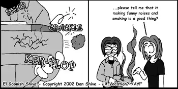 - Parodied on Bob and George, specifically the Star Trek "holodeck malfunction". After the training simulator breaks and traps someone inside a deadly simulation, they ask if this happens often. They learn that this has happened every single time they use it. And they keep doing it anyway.