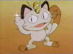 - Verbal Tic: "-nya". Averted in the English dub however; the first few episodes had Meowth use "meow" in a lot of his sentences, but this was quickly dropped.