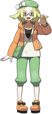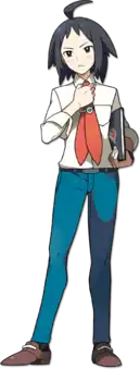 Hilbert/Hilda's rival, who has since gone on to become an aide for Professor Juniper. She delivers the game's starting Pokémon to the new player character and their rival. For tropes pertaining to her appearance in the previous games, see here.