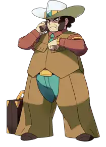 - Flat Character: May come across as this to some players. His characterization can be summed up as "Hello, you have a badge that I also have. Let's battle." followed by "Why am I so weak?".