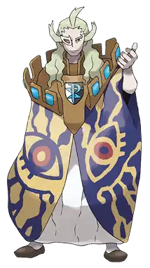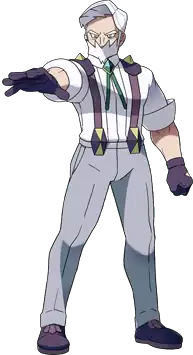 - Obviously Evil: Not just him, but his team consists of Pokémon that according to their respective Pokédex entries, are very violent, aggressive, and sadistic, and none of them look like anything a hero would use. And of course, it's canon that his signature mon, Hydreigon, is an Ax-Crazy Omnicidal Maniac.
