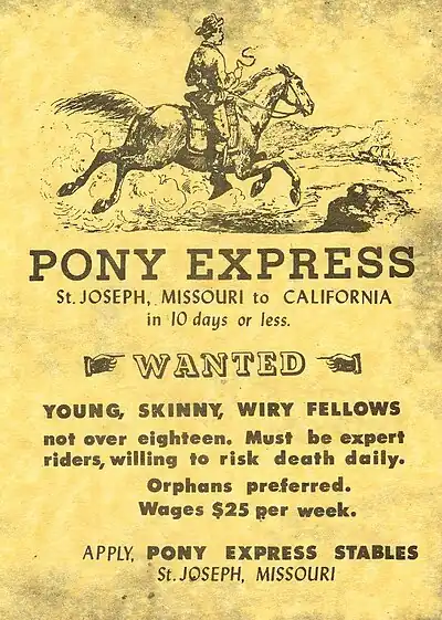 Naturally, there have been books and films about the Pony Express, and sometimes a Pony Express rider will appear in a story that isn't set in the correct time period, just because they're cool. Usually they're not portrayed as scrawny kids either.
