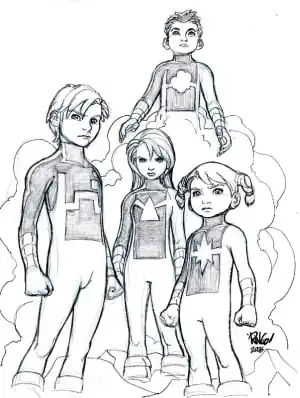 - Most Writers Are Adults: Handled far better than in most series involving Kid Heroes. The characters actually act like kids and show childlike reactions to the things that happen around them and to them much of the time, but not all of the time. Personality-wise, they act childlike enough to be believable, while still being competent heroes. Dialog-wise, they're... a little smart for their age, though they still say childlike things. Of course, they are the kids of a genius.