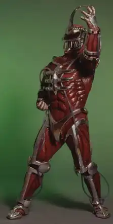 - Ransik, the Big Bad of Time Force, has what looks like the ability to pull bones from his body and turn them into swords. In the Wild Force/Time Force team-up "Reinforcements From The Future" we see exactly how he got the ability to do that: he frees the life essences of three fossilized Orgs, who literally jump down his throat and copy his DNA to create their new bodies. There's also the horrific disfiguration of his face and the liquid-mercury boils that erupt from his body when his disease flares up. During the Season Finale for Time Force, he takes out all the Rangers by simply punching them before pulling a Heel Face Turn, which is the only thing that spared the rangers.