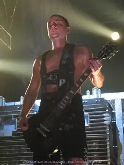 The band's main guitar player. Born as Richard Zven Kruspe in 1967. He was living with his future bandmates Oliver Riedel and Christoph Schneider, and left his first band, "Orgasm Death Gimmicks", when in the mid-nineties he co-founded Rammstein with both of them, Till Lindemann and Paul Landers.