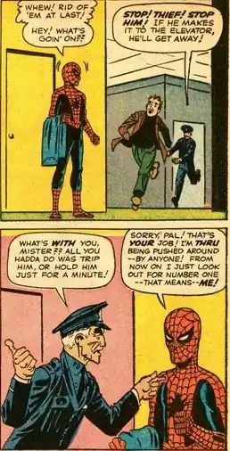 - Spider-Man. He gets asked to stop a thief and literally refuses the call and pays the price. He quits a number of times as an ongoing refusal of the Call, only to find out that the Call has unlimited minutes.