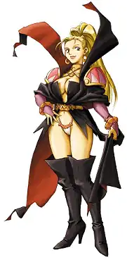 - Inept Mage: She is prone to Magic Misfire, aside from the mentioned above of turning Ferdinand, there's also when fighting the ancient weapon where she screws up a spell and literally knocks herself out.