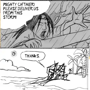 - In Justice League, this is the downfall of the ancient Thanagarians of whom Hawkgirl and Hawkman are supposed to be the reincarnations: Upon discovering his wife's infidelity with John Stewart's counterpart, Katar Hol hyperbolizes that he wishes they were dead. When the vizier takes this as a literal order and carries it out, Katar commits suicide in despair.