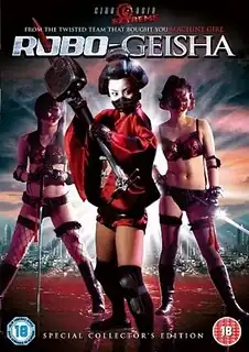 RoboGeisha is a Japanese splatter-horror/action/comedy film directed by Noboru Iguchi (The Machine Girl). It stars Aya Higuchi as Yoshi, Hitomi Hasebe as Kikuyakko , and Takumi Saito as Hikaru Kageno. Originally released in Japanese theatres in 2009, it was later licensed for distribution in English by FUNimation. See James Rolfe review it here.