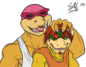 - Fantasy Counterpart Culture: Word of God from TreIII is that the Koopa family's culture is equivalent to African American, as scalies are a minority in a society of furries. The Koopa family also has some Eastern Dragon lineage through Bowser's ancestry, implying Asian descent as well. The Roommates team chose intentionally not to follow a specifically Korean or Zainichi Korean ethnic angle for the Koopa family itself, allowing the reader to use their own imagination.