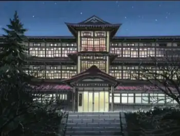 A Ryokan is a particular type of large, luxurious traditional Japanese inn. Ryokans typically feature tatami-matted rooms, sliding doors, a large central room for socializing, communal baths and a nearby hot spring. Everything about them is traditional, from the wood and rice paper architecture to the yukata they supply for their guests to wear. Most are family owned and feature traditional Japanese room service, sometimes with very exotic food. There is a good chance the inn is run by a really short kind old lady. In works set in Japan, they are frequently featured in a Hot Springs Episode or Beach Episode. Common activities for guests include bathing, table tennis and visiting the local festival.