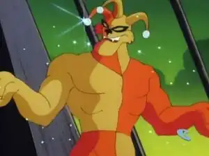 Insane comedian Lenny Ringtail, whose mind snapped when he was turned down as a Talk Show host in favor of David Litterbin, lets himself be possessed by the vengeful ghost of a medieval court jester who suffered a similar rejection centuries ago. The result is Madkat, a wisecracking, shapeshifting harlequin who uses his magical powers to kidnap "the king, queen, knight and jester" (aka Manx, Briggs, Feral and Litterbin), then vanish into thin air before the SWAT Kats can stop him.