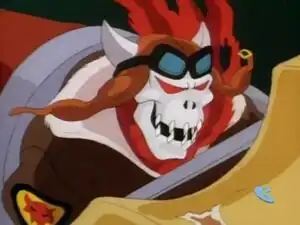 Turmoil is a harshly beautiful villainness in a Nazi-like uniform. She attempts to conquer the skies of Megakat City with an Airborne Aircraft Carrier, an Amazon Brigade of female fighter pilots, and a disorienting "vertigo beam". When T-Bone withstands these obstacles, she's so impressed (and smitten) that she offers him a job as her flight commander--but first he must prove his loyalty by killing Razor.