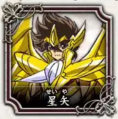 Once a lowly Bronze Saint, Pegasus Seiya's heroic deeds saw him quickly ascend the ranks of Athena's Saints. He is the goddess' most valuable warrior, aiding her through many battles to protect her and the world. They eventually developed a relationship that was beyond mere God and Saint. Now he is promoted to Gold Saint wielding the very Cloth which aided him through hard times: Sagittarius. Years later, however, he apparently dies fighting Mars during his first attack, although he'd still communicate with Kouga, the heir to his old Cloth, on occasions.