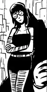 The drummer of The Clash at Demonhead. She largely remains silent and expressionless and lets Envy and Todd do all the talking. She has a bionic arm and is capable of teleportation. Todd is cheating with her behind Envy's back.