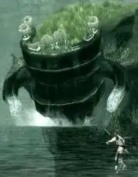 Colossus number twelve. It's a massive quadruped hammerhead-shark-gorilla with hooves and the ability to shoot lightning through its horns. It fights Wander in a large lake.