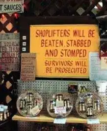 - In Dungeons of Dredmor, stealing an item from a shop provokes the high-level shopkeeper to attack you and spawns mass armies of enforcer demons to kill you.