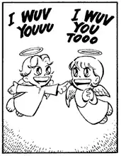 - Michi and Yoshirin, the young couple from Crayon Shin-chan, are a clear parody of this trope. Apart from occasional (and pretty dumb) break-ups, all they do on the series is be lovey-dovey with each other. At least on the original and Spanish dubs.