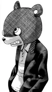 The Death Scythe in charge of South America, Tezca appears to be a man wearing a large grinning bear mask that completely covers his head. His Weapon form is a mirror, worn on the ankle of his Meister, Enrique.