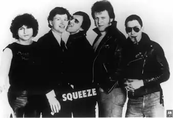 Squeeze is a new wave band from Deptford, South London. The group formed in 1974 when Glenn Tilbrook answered an advertisement Chris Difford posted looking for a guitarist and bandmate. The two began writing music together, and were soon recording and publicly performing. Their first hit came in 1978 with “Take Me, I’m Yours”. The band experienced great success with songs that followed, including “Cool For Cats”, “Up The Junction”, “Tempted”, “Labelled With Love” and “Black Coffee In Bed”.