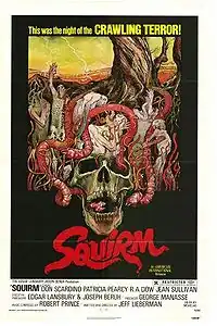 Filmed in 1976, Squirm is the tale of a Love Triangle between: Geri, a country girl, Mick, the city boy who wants to "examine her antiques", and Roger the local boy who's dissatisfied with his lot in life. More importantly, it's about the gigantic swarm of electricity-maddened earthworms that seek to tear them apart...literally.