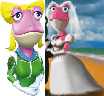 - Species Surname: She starts off in the game with no surname, but considering how she's engaged to Slippy and eventually marries him, she does come around to fitting the trope at some point.