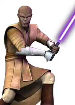 - Scary Black Man: His implacable nature and fierce disposition are such that in the Ryloth arc, Dooku ordered Wat Tambor and his army to retreat rather than face Windu.