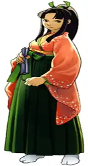 - Expository Hairstyle Change: In EX2, she ties her hair in a ponytail and dons a new kimono (as seen in the image to the right). She switches back to her old outfit in the next game.