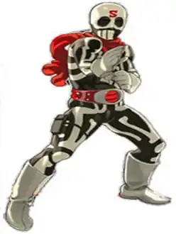 Skullomania is the superhero identity of a third-rate salaryman from Tokyo named Saburo Nishikoyama, who works to support his wife and children. After dressing up as a superhero for a department store attraction, Nishikoyama decided to become a superhero for real, choosing to fight crime as a hobby during the weekends. Outside the EX series, he also appeared in Arika's Fighter Maker for the PS1.