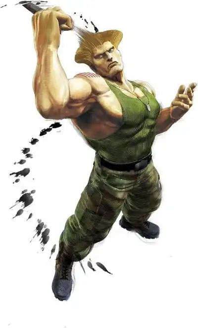 An All-American Air Force major who has sworn Revenge on Bison for the death of his friend Charlie (as later seen in the Alpha series), and almost succeeds in Street Fighter II until his wife Jane and their daughter Amy arrive and convince him to stop. He spares Bison and goes home to live a life away from fighting... until IV when something comes up involving Shadaloo and he's sent in to investigate S.I.N. Has really big hair, which he apparently maintains via a military-order hairspray. His wife Jane is Eliza's sister, making him and Ken in-laws, but they don't really like each other very much. |