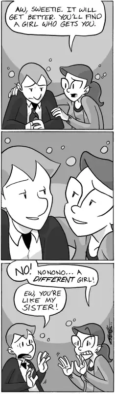 Compare and contast with I Don't Want to Ruin Our Friendship. The difference lies in the reaction of the character feeling the romantic/sexual feelings (and, in many cases, the former relationship between the two): if they're creeped out by their sudden attraction to the person they had always considered a brother/sister, it's this trope; if they're worried that admitting their feelings to someone with whom they've been Just Friends will cause drama or change a group dynamic, it's I Don't Want to Ruin Our Friendship.