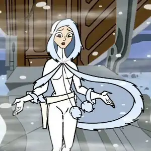 - Picture comes from Star Wars: Clone Wars. Amidala's suit does seem like it could work on an ice planet, but what makes it this trope is the short, but voluminous fur-trimmed Pimped-Out Cape, with the two furry puff balls (an accessory that is strictly for fashion, not utility).
